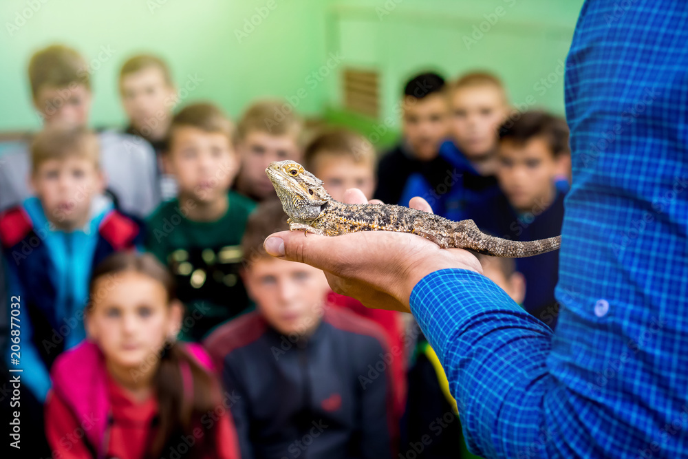 In a modern university, a diverse group of students, including an Afro-American student and a hijab-wearing woman, walk together in the hallway, accompanied by their wheelchair-bound colleague