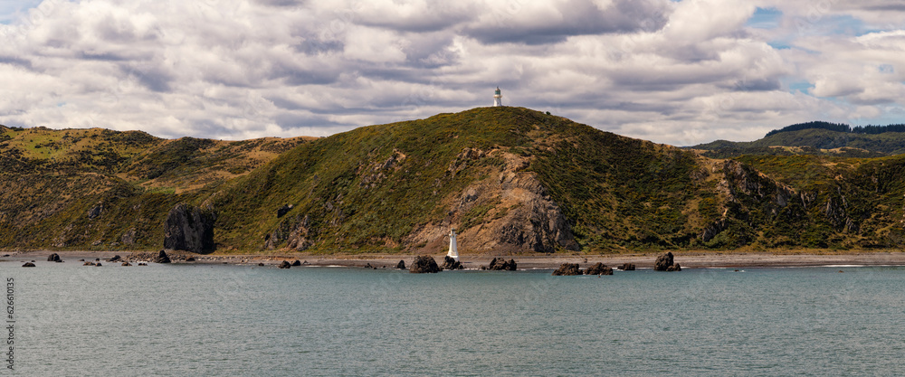 The lighthouses of Baring Head at the sea entrance towards Wellington, New Zealand