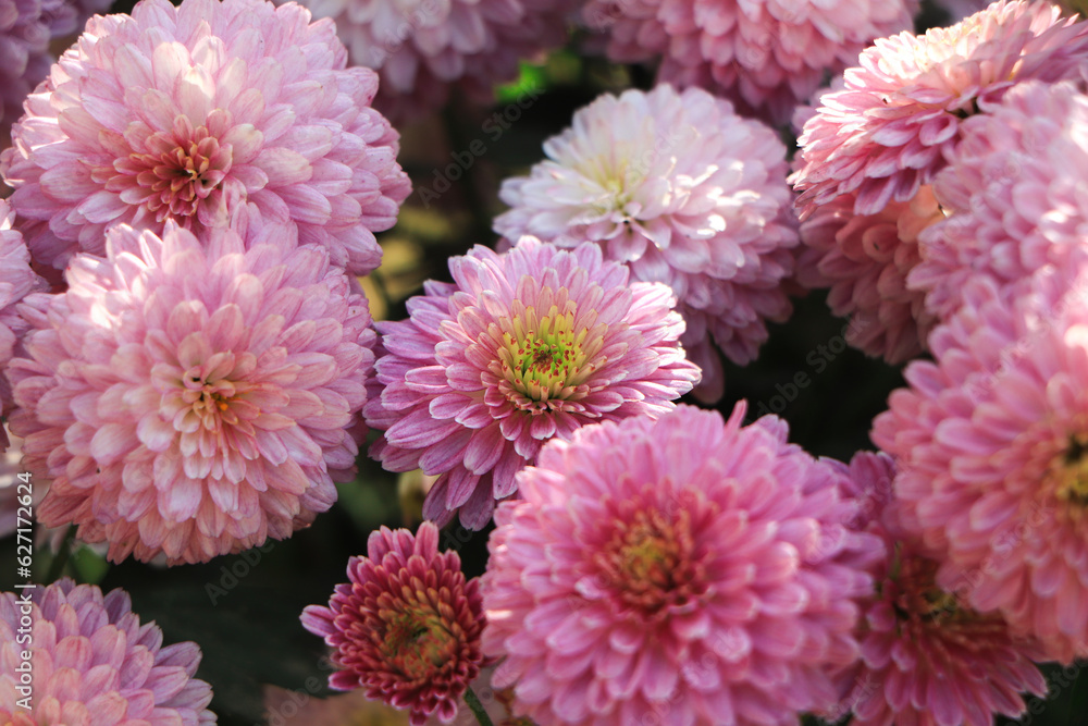 pink winter chrysanthemum flowers with space for text. garden chrysanthemum