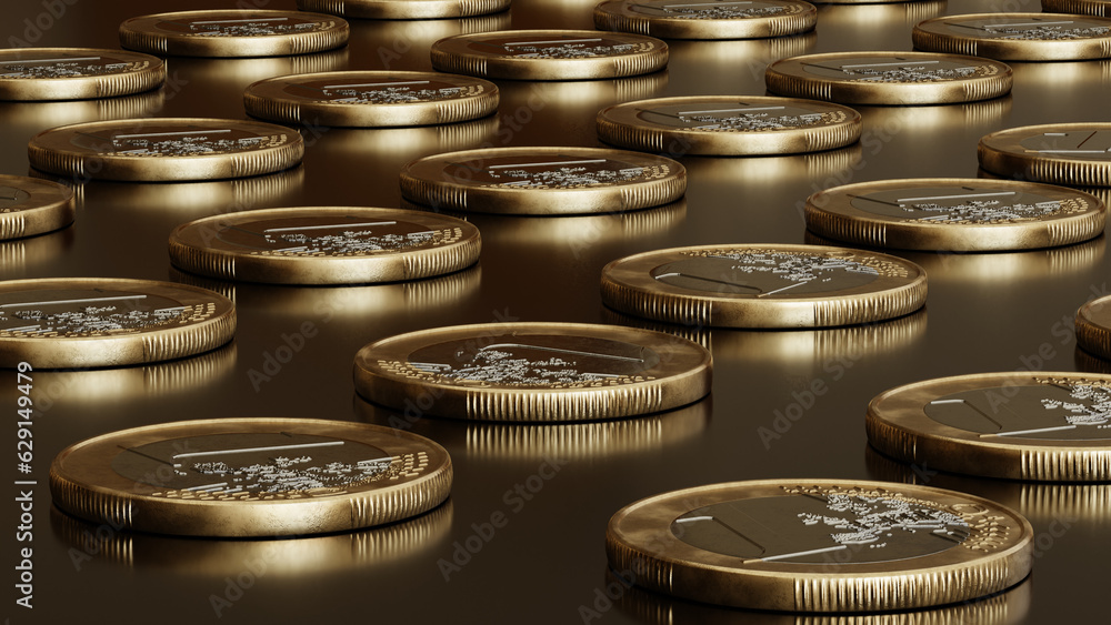 Several euro coins lying on a dark surface