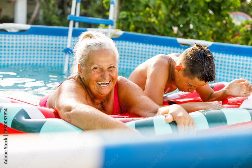 A family having fun in the swimming pool