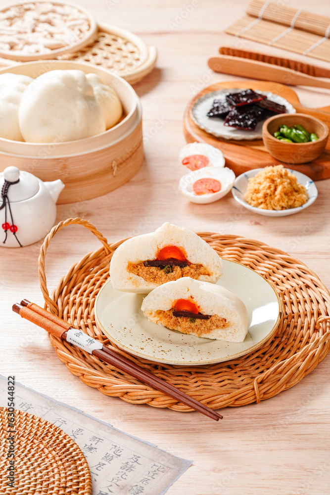 Baozi or Chinese Steamed Buns is a type of yeast-leavened filled bun in various Chinese cuisines.