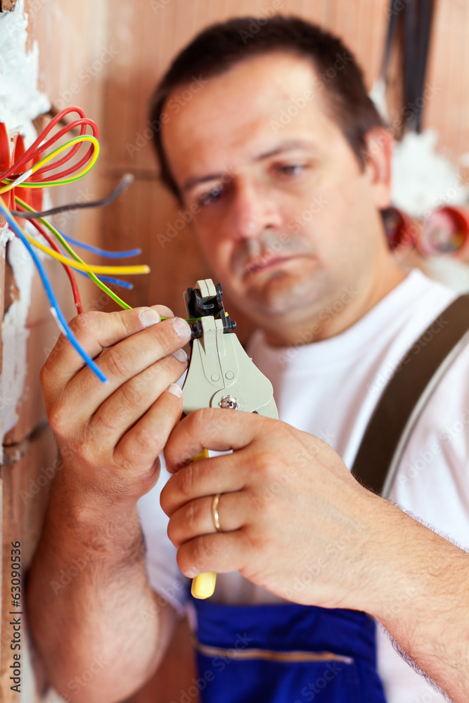 Electrician peeling wire endings