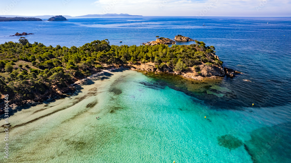 Photo aérienne d' une partie de la Baie de l' Estagnol à Bormes les Mimosas dans le Var