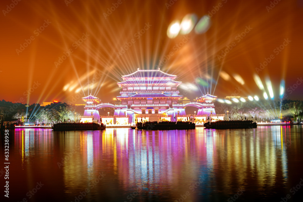 The night view of Ziyun Tower, it is a famous ancient building in Xi'an, China.