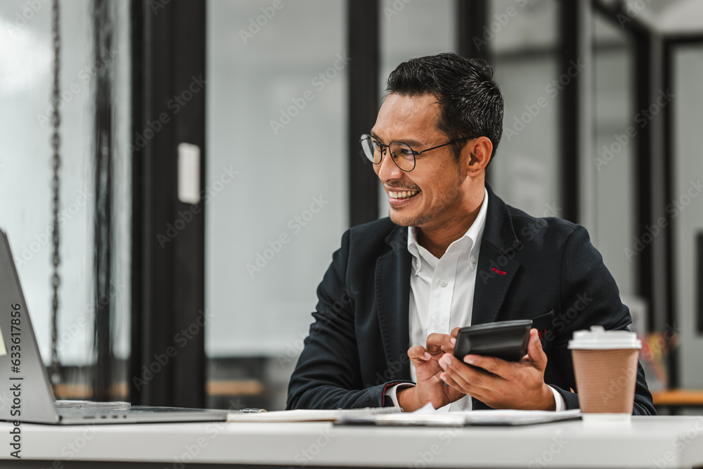 Handsome Asian businessman of Indian descent working at desk, digital asset exchange license, the world's largest cryptocurrency exchange by trading volume, registered recognized market operators