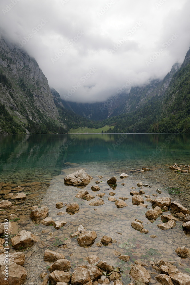 Bergsee im Berchtesgadener Land mit Steinen im Vordergrund