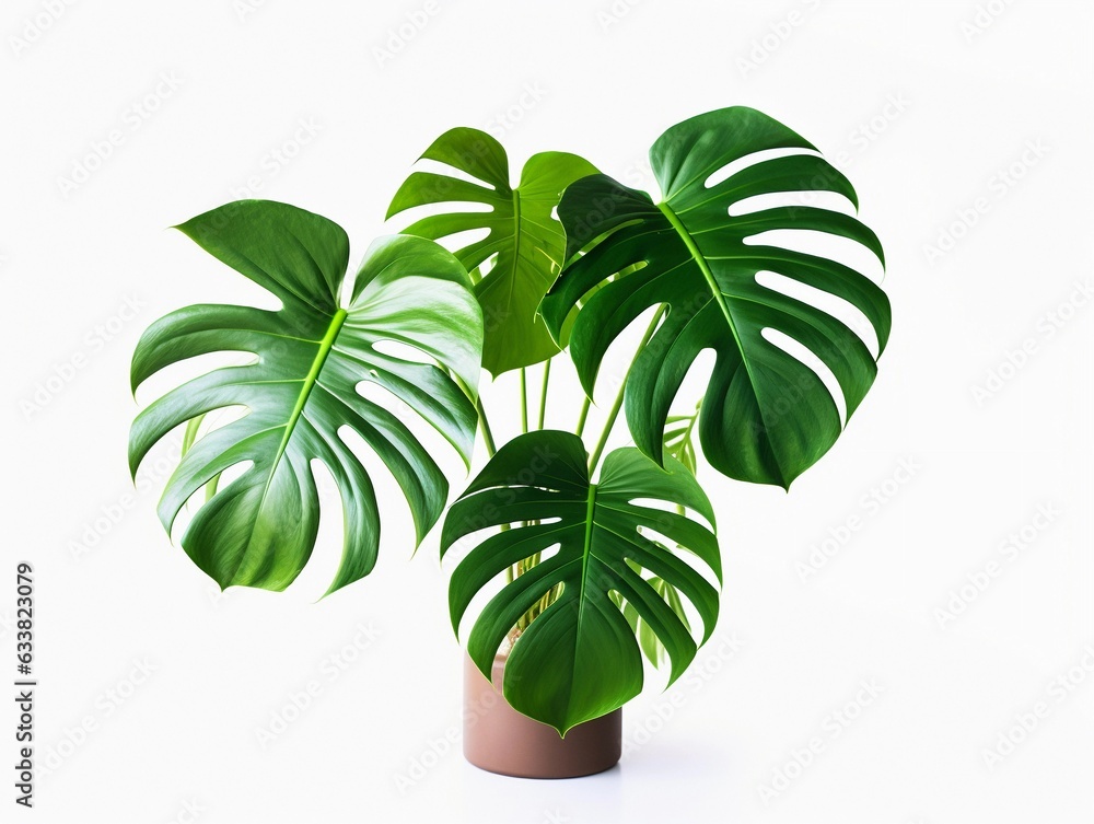 clean image of a large leaf house plant Monstera deliciosa in a pot on a white background