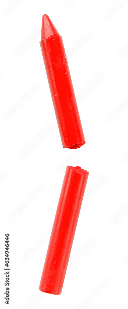 Red crayons isolated on transparent background, broken colored sticks