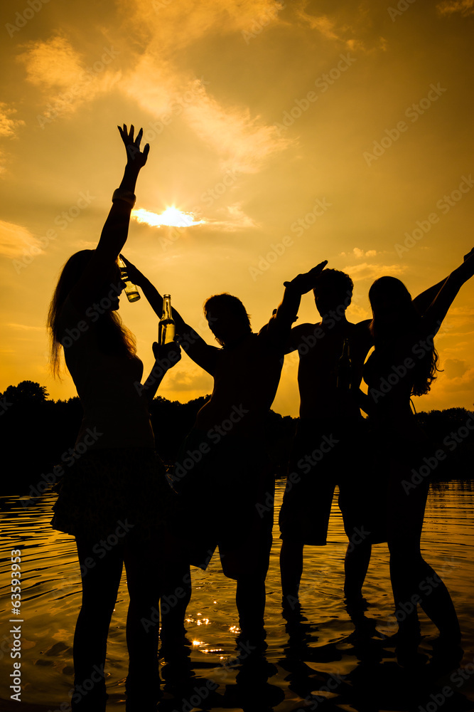 Gruppe feiert Party am Strand
