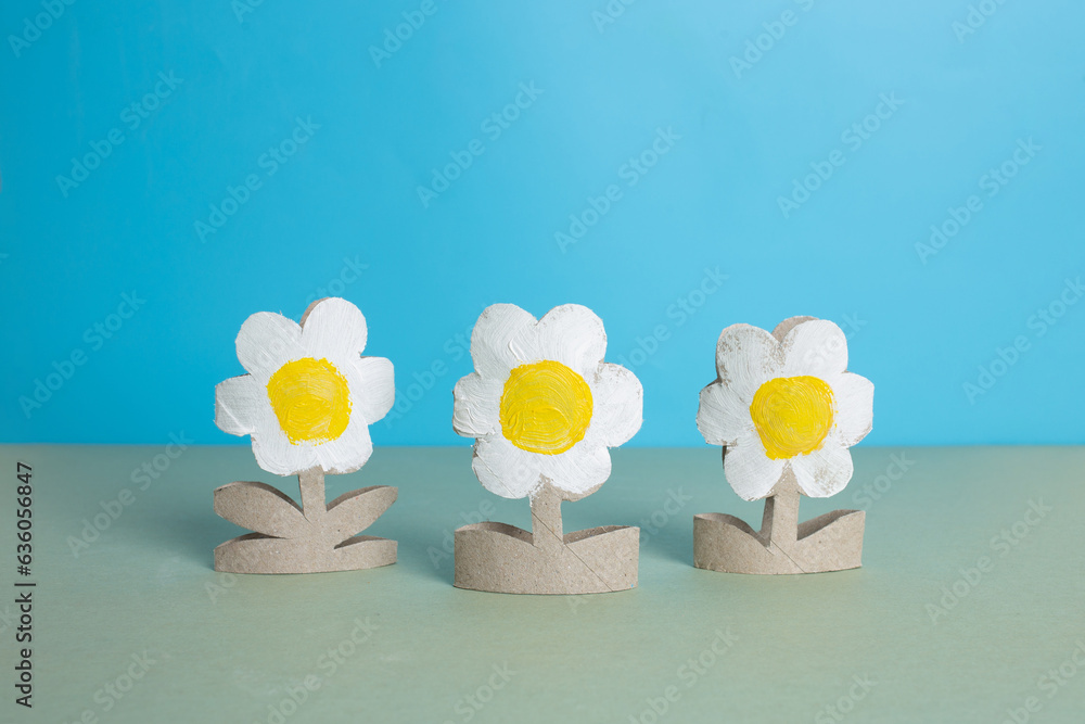 toilet paper roll craft concept for kid and kindergarten, DIY, tutorial, summer or spring flower toy, recycle art
