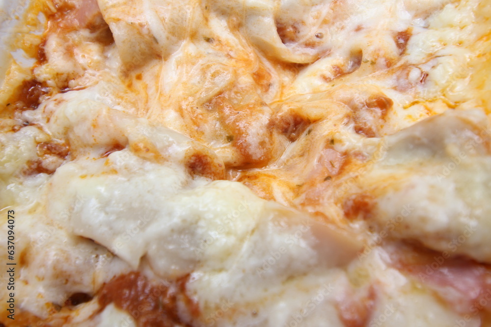 disassembled lasagna ready to eat. lasagna with selective focus. food for lunch or dinner.