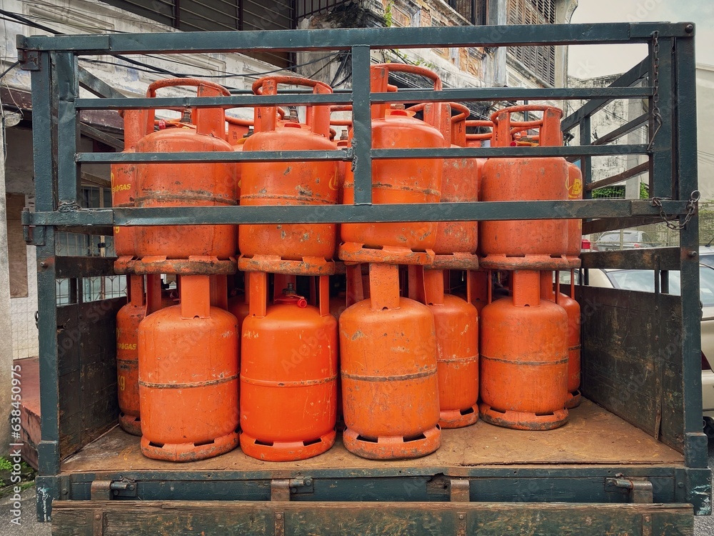 Gas bottles on the back of the delivery truck.