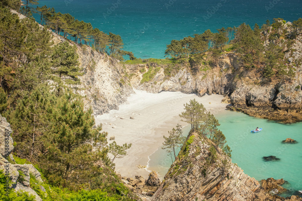Presqu'île de Crozon, plage deserte a l'eau transparente et paradisiaque de l'île vierge au sud de Morgat dans le Finistère,en Bretagne