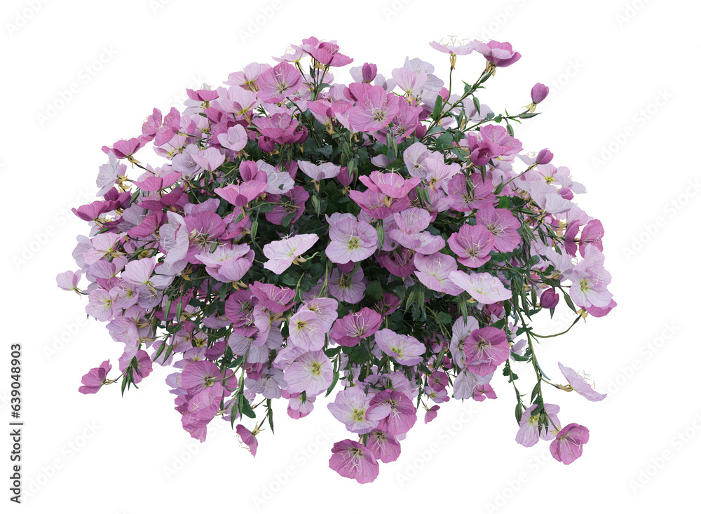 Various types of pink flowers grass bushes shrub and small plants isolated