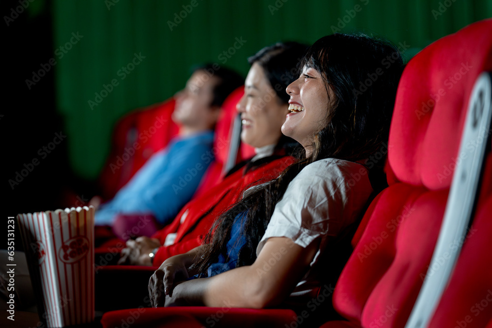 Side view of Asian woman use mobile phone during work with tablet to contact her coworker or staff and she sit in area of her office with happiness.