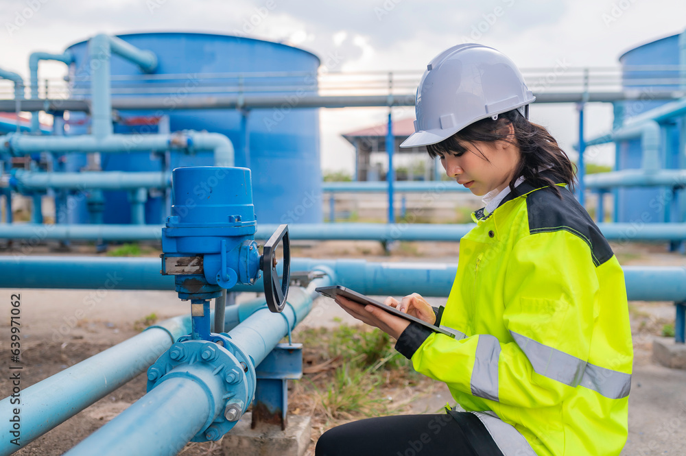 Environmental engineers work at wastewater treatment plants,Water supply engineering working at Water recycling plant for reuse,Check the amount of chlorine in the water to be within the criteria.