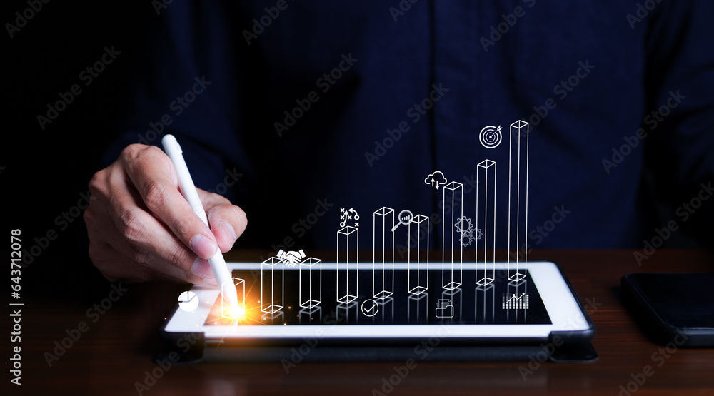 Finance and business analytics concept. Businessman analyzing business enterprise data management. Digital marketing, Set goals for better results, financial data for long term investment growth goal,