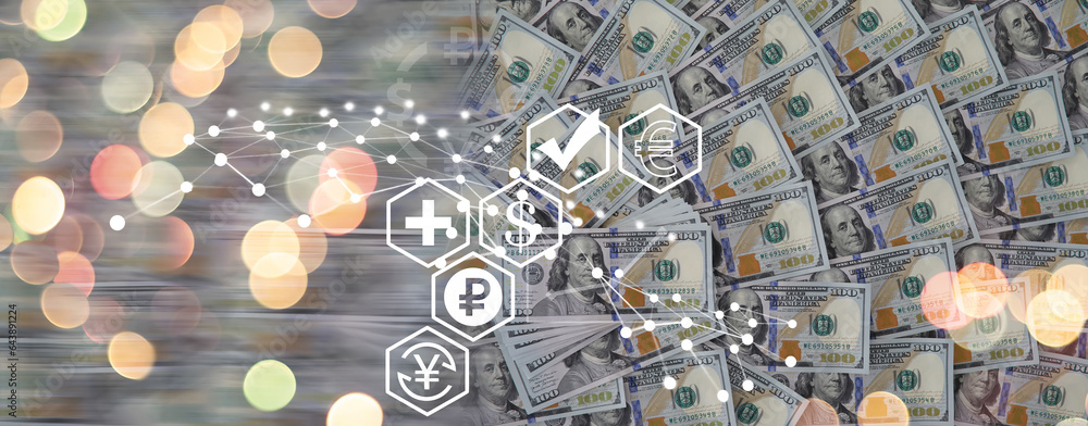 Dollars bills. Dollars background. Background of different us dollar banknotes. Finance concept.