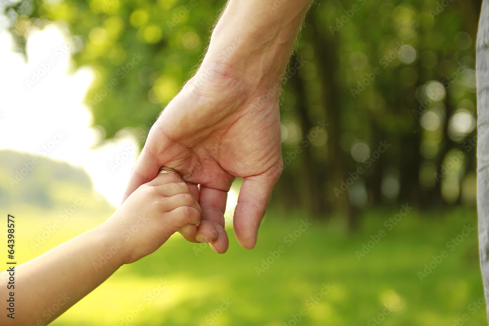 parent holds the hand of a small child