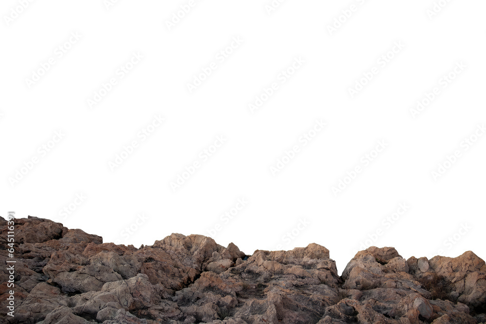 Rocky ground, mountain slope on foreground, isolated PNG cutout. Element for matte painting or photobashing, copy space.