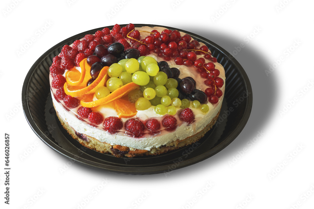 Fresh homemade cake with cream and berries
