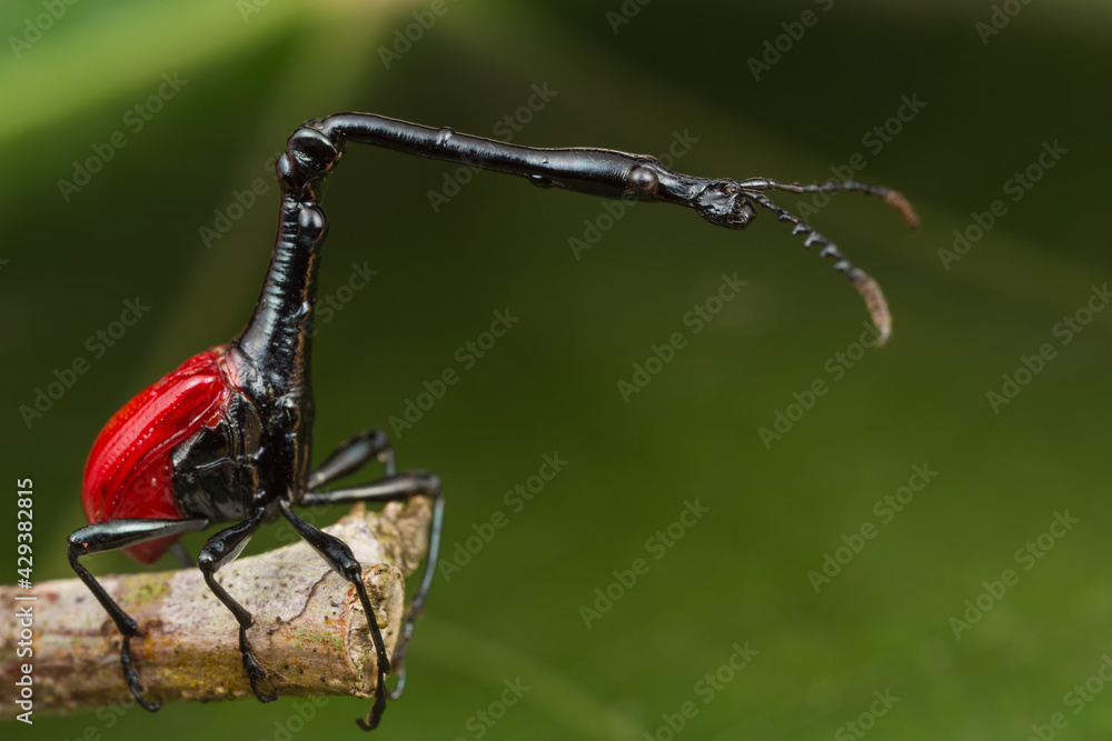 Canada Thistle Bud Weevil on a leaf, Larinus Carlinae