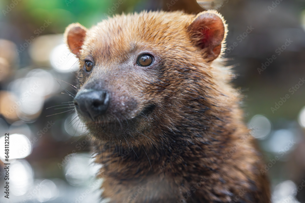 Bush dog (Speothos venaticus) in nature. Bush dogs are found from Panama in Central America, through much of South America.