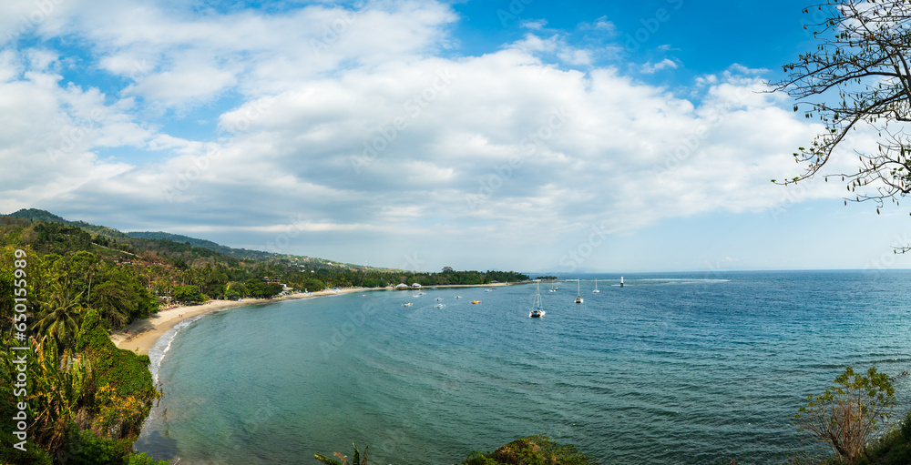 Senggigi beach panoramic view in Lombok, Indonesia. Popular beach area in Lombok, Indonesia