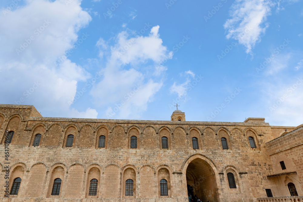 Mor Hananyo Monastery in Mardin Turkey. The famous tourist attraction is also known as Deyrulzafaran Monastery.