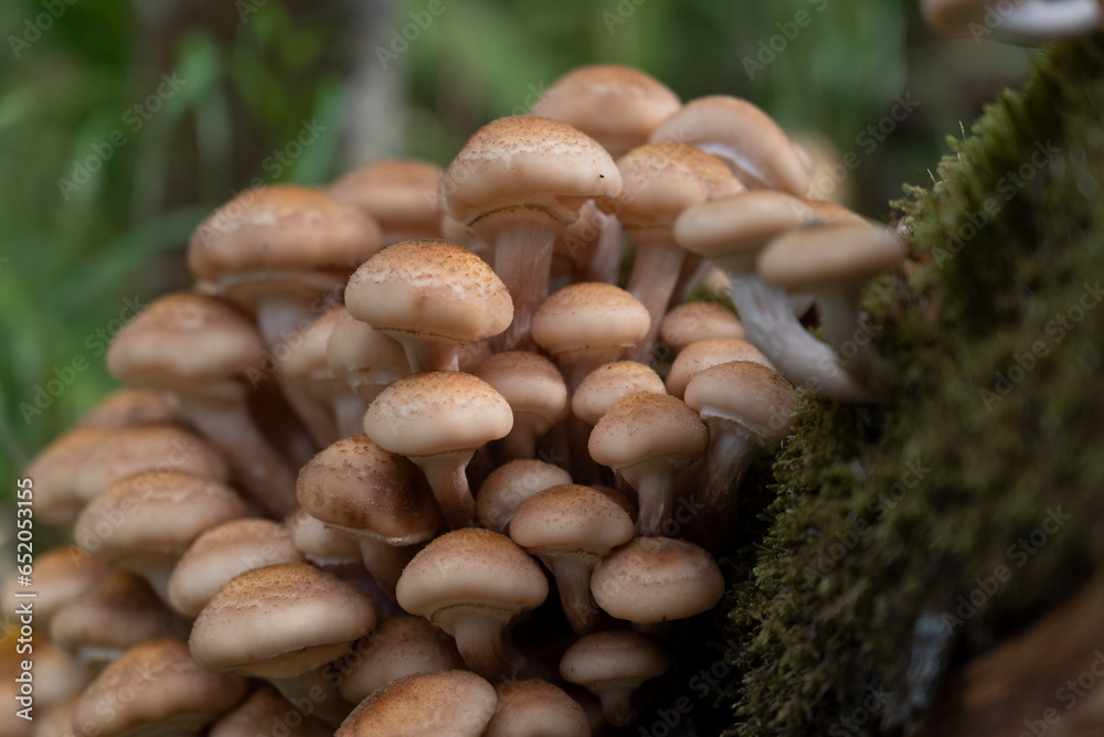 Armillaria mellea - honey fungus in forest - very taste edible mushroom. edible beautiful mushroom