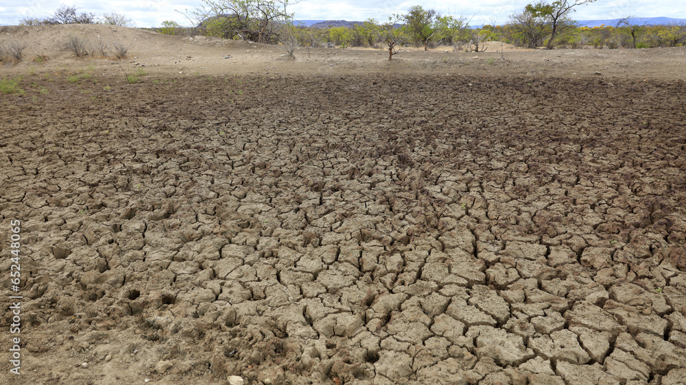 curaca, bahia, brazil - september 17, 2023: view of cracked earth in a dry dam due to drought in the backlands of Bahia