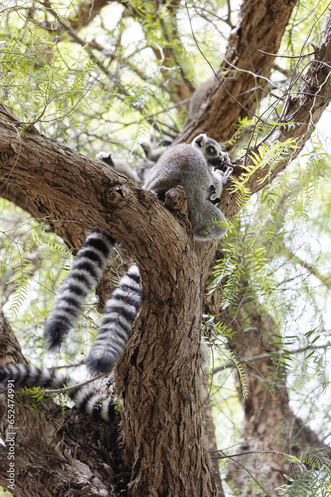 Ring tailed lemurs on tree at Bioparc, Valencia, Spain.