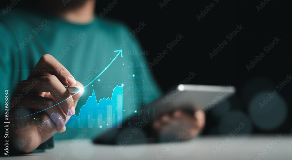 Data analysis concept. Businessman analyze business growth graph, Analysis of market data chart graph, Increased financial growth data platform report on dashboard. Financial and banking.