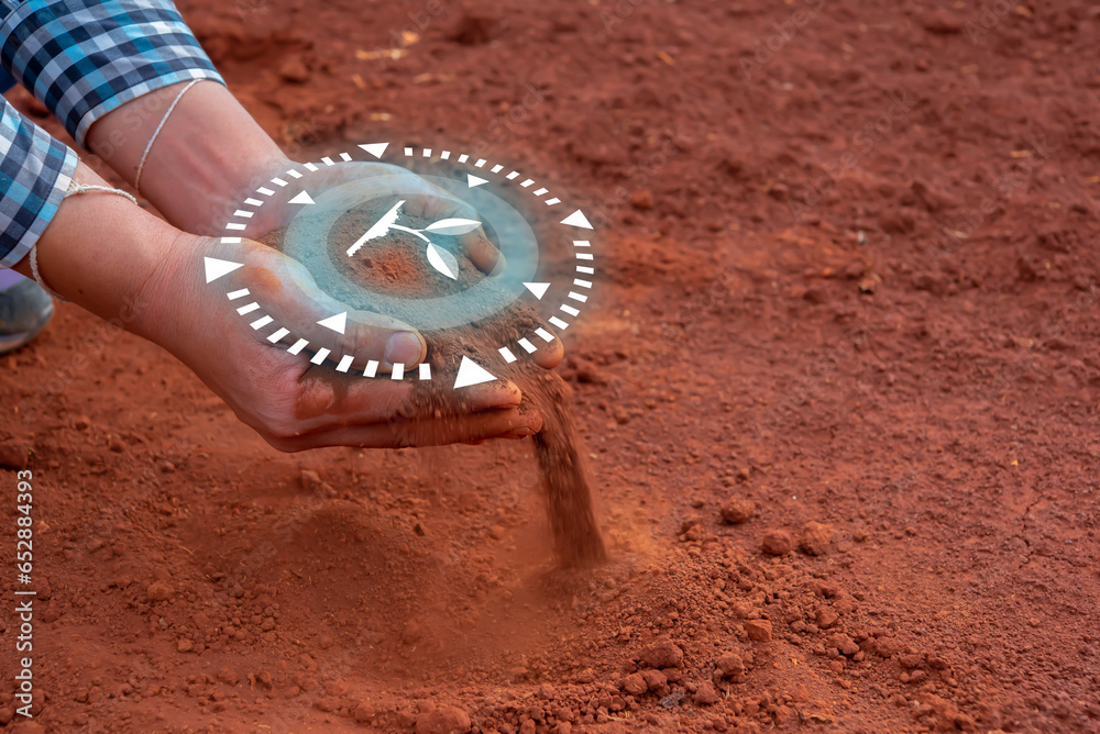 Man hand holding seeding plant for planting, Preparing the soil for planting.