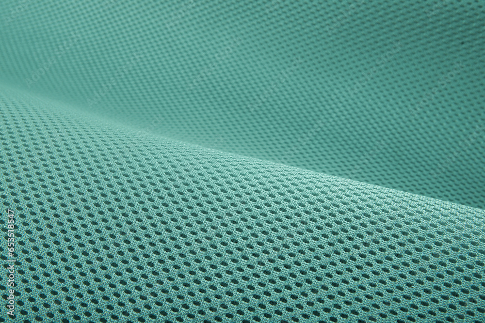 Rough pool green fabric texture, cotton knitted fabric, modern waterproof flexible temperature control materials, multifunctional smart textile close-up, selective focus, does not tear
