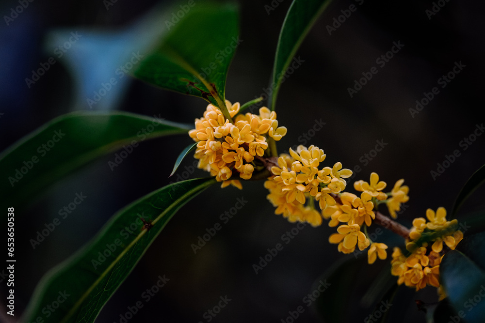 Osmanthus flowers blooming on branches in autumn
