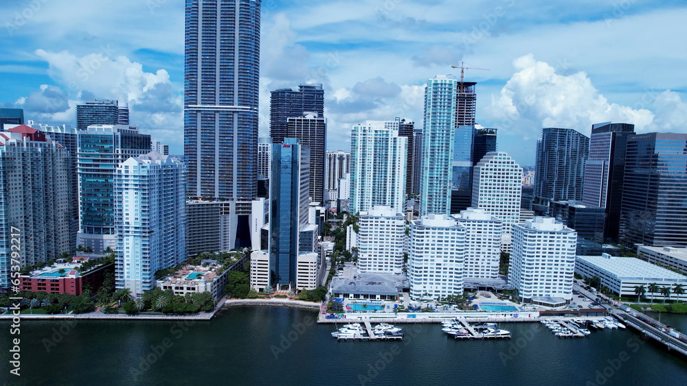 Cityscape Miami Florida United States. Aerial landscape of stunning buildings and traffic at landmark avenue. Miami Florida. Miami United States. Travel destinations. Vacations travel.