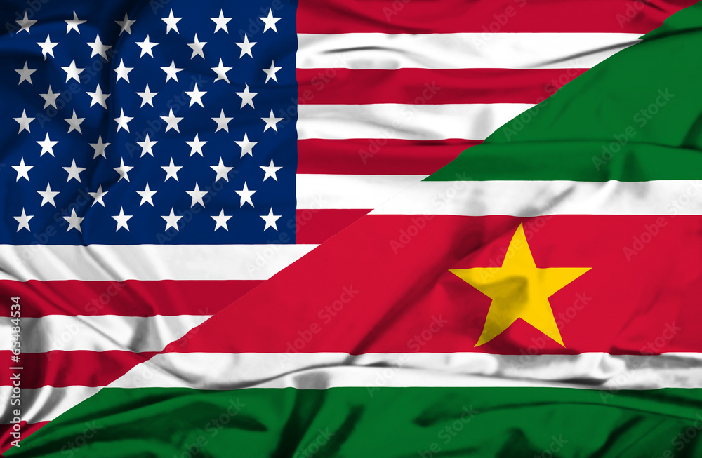 Waving flag of Suriname and USA