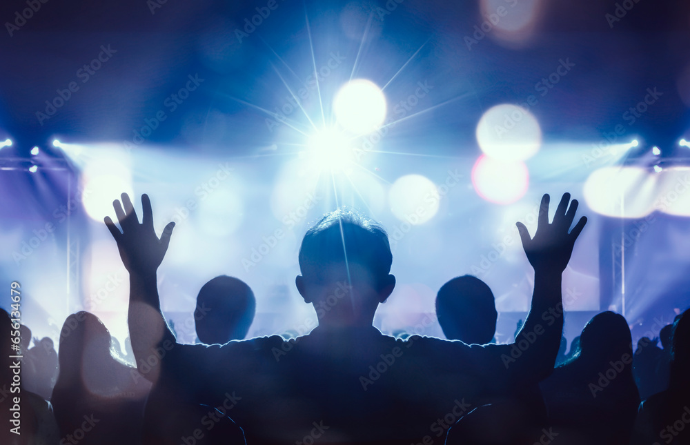Blurred photo of Christian worship God together in Church and light bokeh effect
