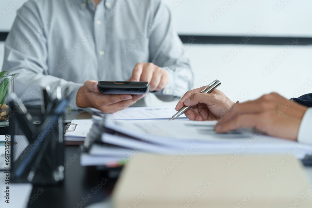 Woman Analysis Business Accounting working with Individual income tax return Accounting concept..