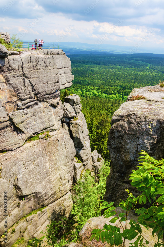 Tourists standing on a rock and looking to the horizon