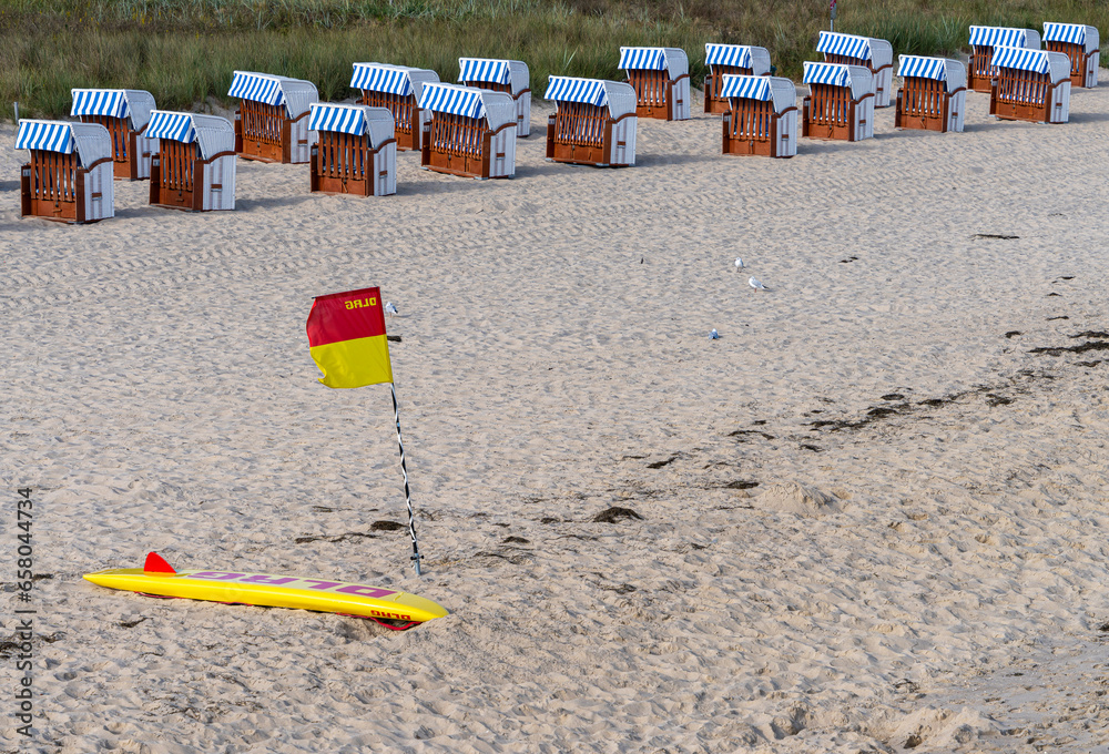 Seenotrettung, DLRG, Rettungsschwimmerflagge am Strand von Göhren, Mecklenburg-Vorpommern, Rügen, Deutschland