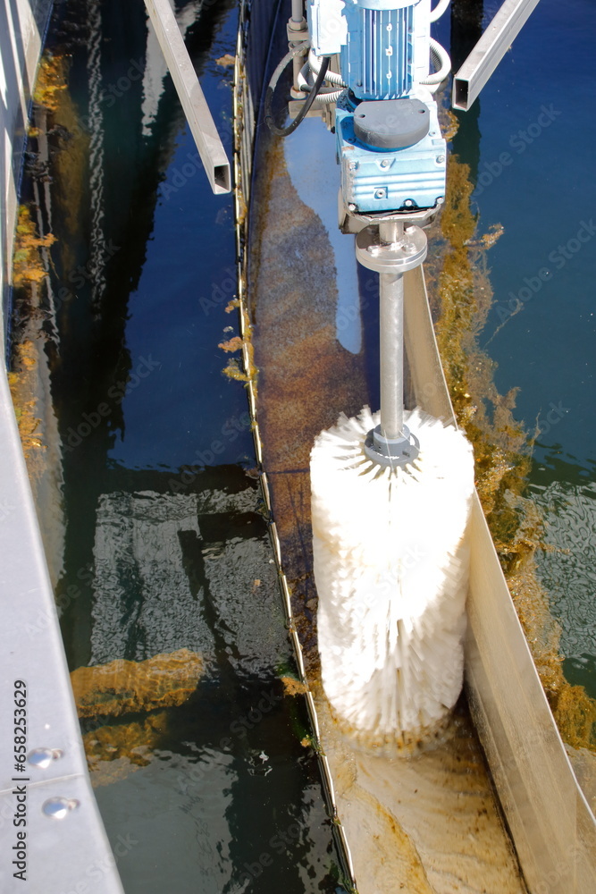 Bürste zu Reinigen der Ablaufrinne im Nachklärbecken einer Kläranlage