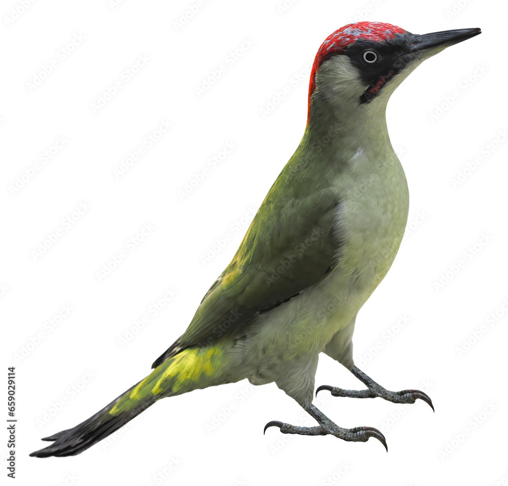 Male of European green woodpecker (Picus viridis), PNG, isolated on transparent Background