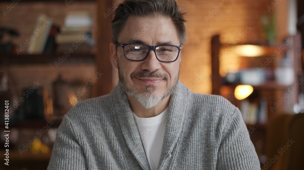Close-up portrait of a woman with a headset, an online customer support worker smiling and looking at the camera, a business woman advising clients, working inside the office, using video call
