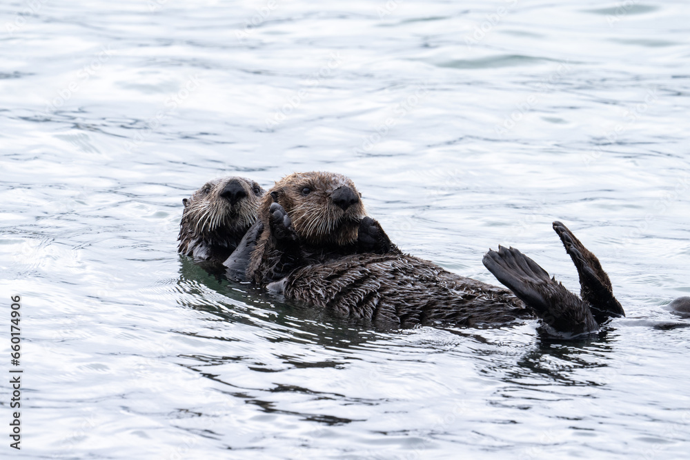 Sea otters together in the ocean