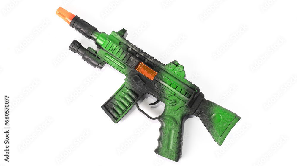 Machine gun AK47 toy isolated on white background.