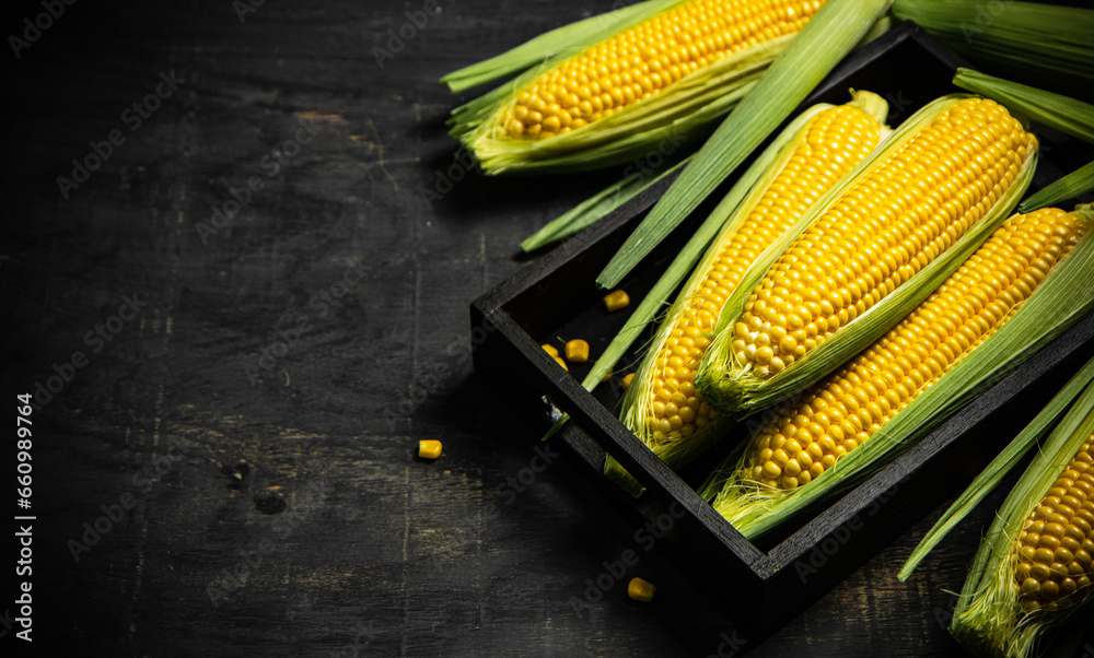 Fresh corn in black box.