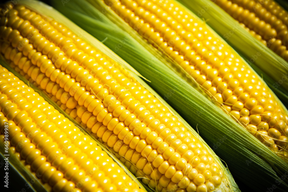 Fresh corn on cutting board.